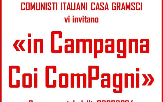Le compagne e i compagni dell’Associazione Comunisti Italiano Casa Gramsci vi invitano “in Campagna Coi Compagni”. Pranzo sociale | #inCCCP2024 Domenica 26 maggio 2024 dalle ore 12:00 in via del…